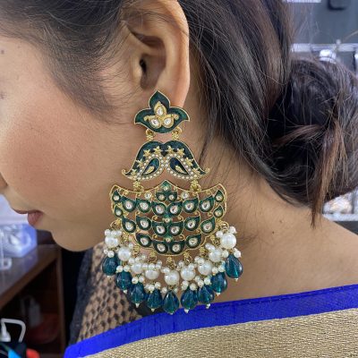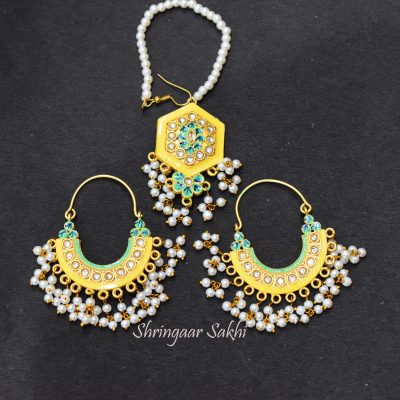 Peach Green Mahira Chandbali Maang Tikka Combo