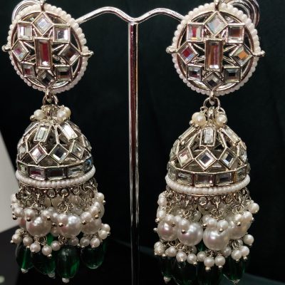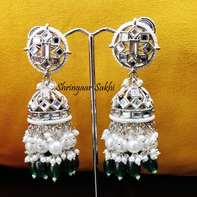 Silver Green Shirin Jhumki Earrings
