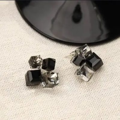 Black Silver Cube Stud Earring