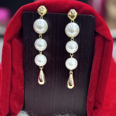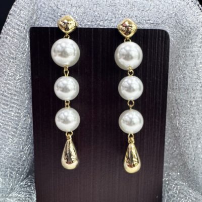 Golden White Pearl Metal Long Earring