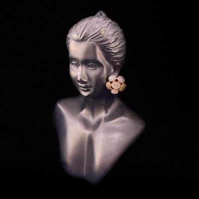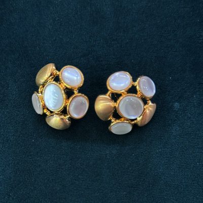 Golden White Round Flower Stud Earring