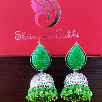 Green Aparna Carving Stone Oxidised Earring
