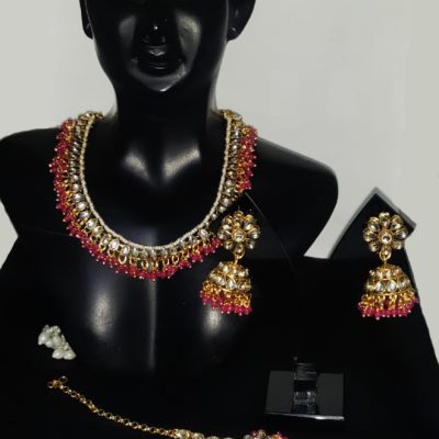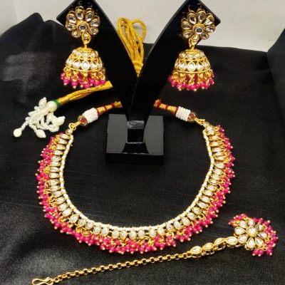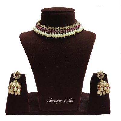 Pastel Pink Green Saanvi Kundan Choker Combo Set