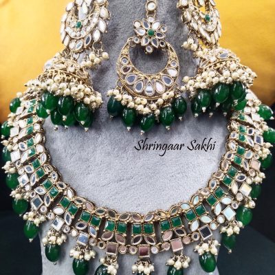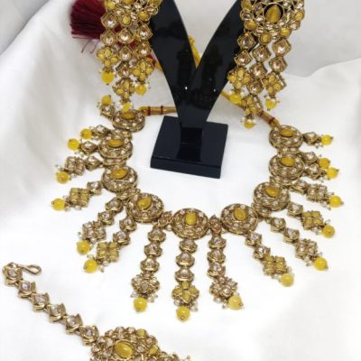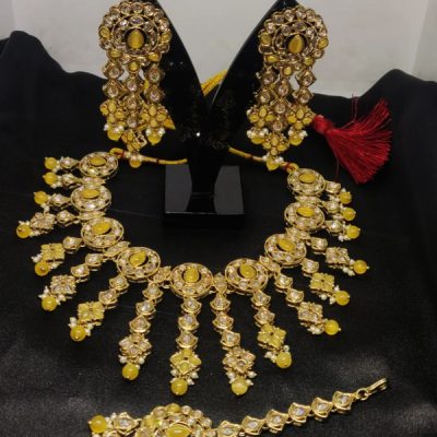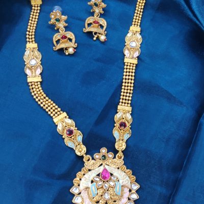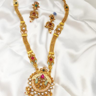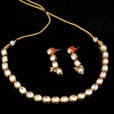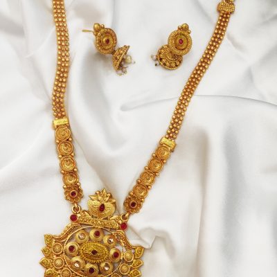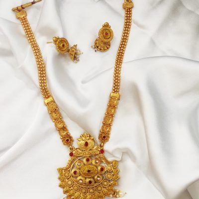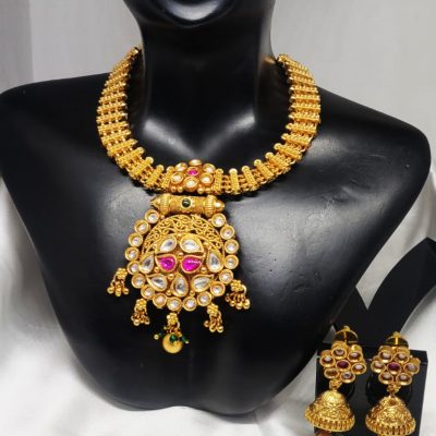Golden Ruby Silver Stone Work Matte Finish Choker Set