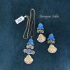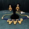 Pair this exquisite necklace set with a rich maroon or golden saree or lehenga to complement the deep tones of the beads and the intricate pendant design. Opt for a classic updo or soft curls to highlight the pendant and earrings, and complete the look with bold makeup, focusing on a deep red or maroon lip color. Keep other accessories minimal with a simple bracelet or a statement ring to let the necklace set take center stage, ensuring a sophisticated and polished look for special occasions.