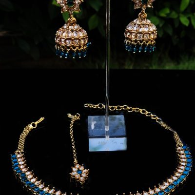 A white choker set of pearls redefines elegance with its unique oval pearl shape. The pearls’ modern form, smooth white hue, and cascading layers around the neck create a sophisticated and captivating look. This distinctive choker is secured with a delicate clasp, making it a timeless statement piece for any refined occasion.