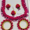 Ideal for mehandi or sangeet ceremonies, this set adds a colorful and bohemian touch to any outfit. Pair it with lehengas, sarees, or Indo-western outfits in contrasting colors like teal, mustard yellow, or white to let the intricate work shine. Style your hair in a loose braid or an updo, and keep makeup light with a focus on radiant skin to complement the artistic detailing of the jewellery.