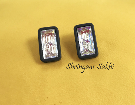 Elegant rectangular stud earrings featuring a clear, high-shine crystal encased in a sleek matte black border. Simple yet striking—perfect for everyday glam.