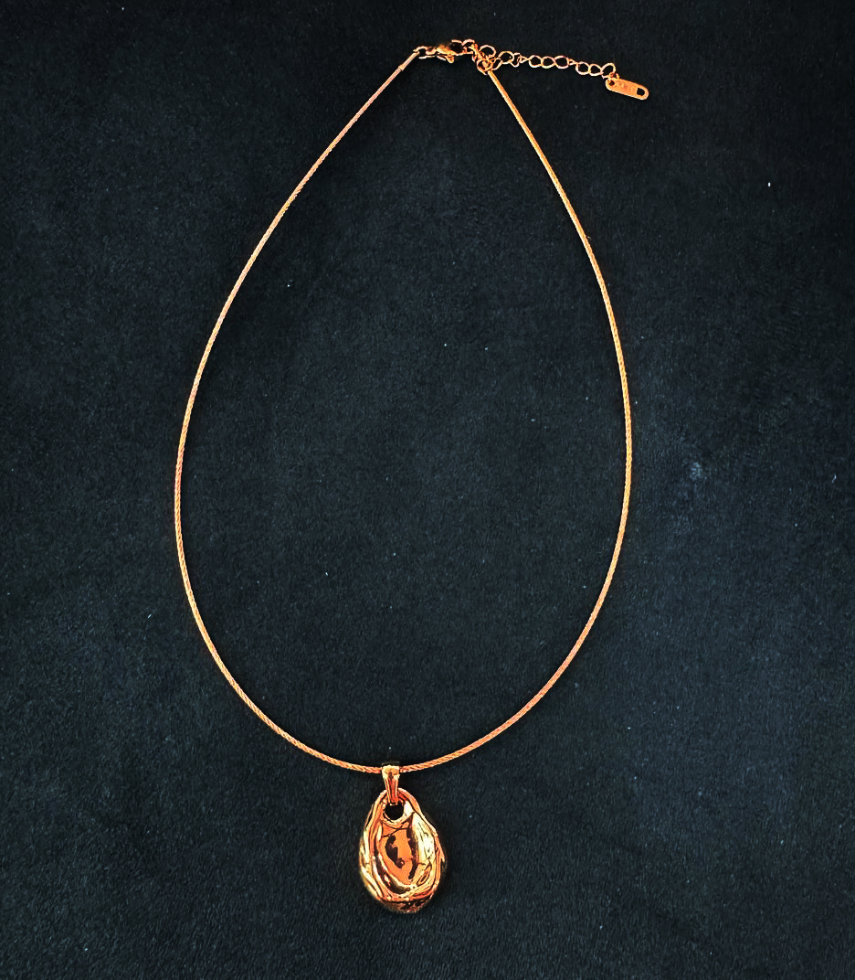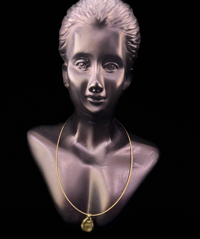 This elegant gold necklace features a sculpted, molten-style teardrop pendant that radiates modern minimalism with a hint of artistic flair. The sleek, solid chain perfectly complements the organically shaped pendant, creating a sophisticated yet edgy accessory that’s ideal for everyday chic or evening elegance.