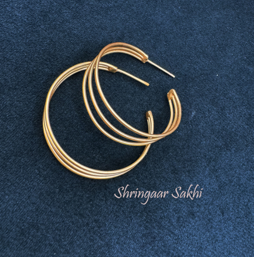 These Shringaar Sakhi hoops feature a modern, layered design with multiple intertwined gold wires, creating a sleek and contemporary statement piece. The simplicity of the design makes these earrings versatile, ideal for both casual daywear and stylish evening ensembles.