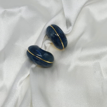 Pair these earrings with crisp whites, denim, or neutral tones to let the rich blue hues stand out. They work beautifully with both casual and semi-formal ensembles—think a structured blazer with jeans or a satin midi dress. For a polished finish, wear your hair tucked behind the ears or in a sleek bun to highlight the earrings’ sculptural form. You can complement the look with a blue-toned eyeshadow or gold accents in other accessories to create a cohesive, fashion-forward vibe.
