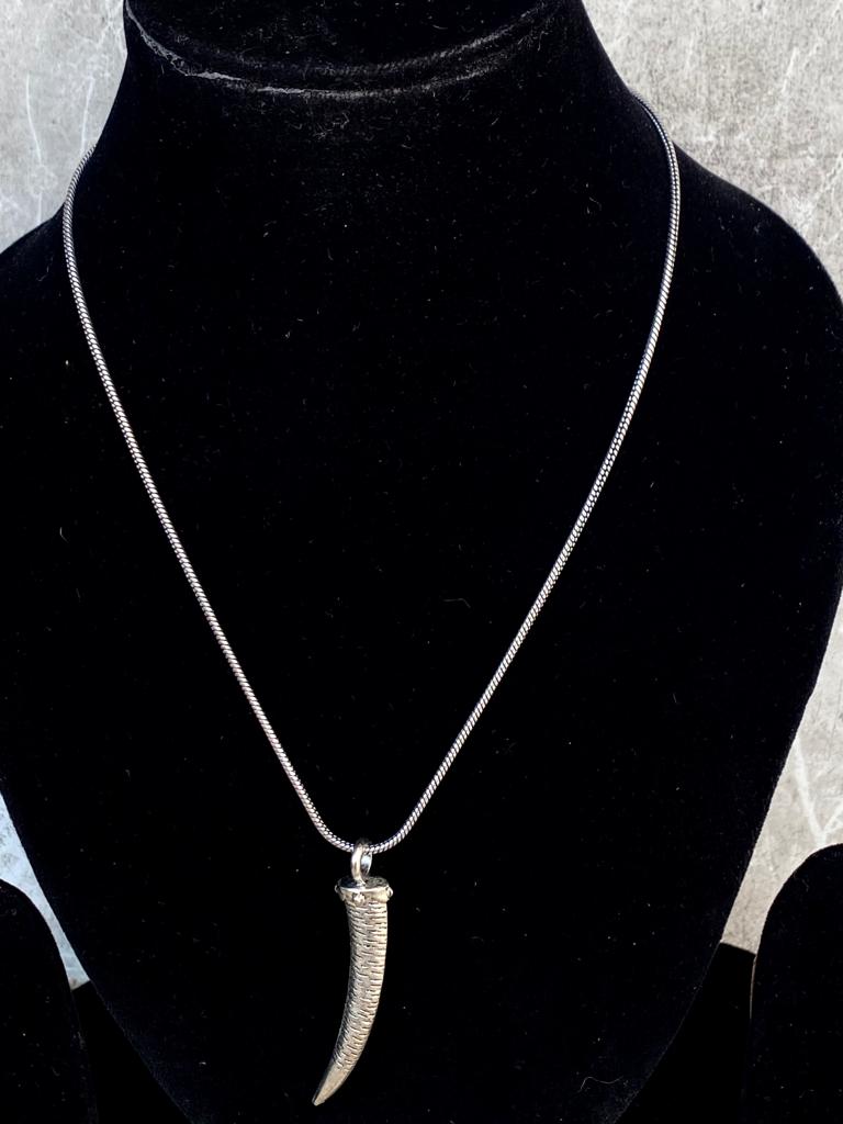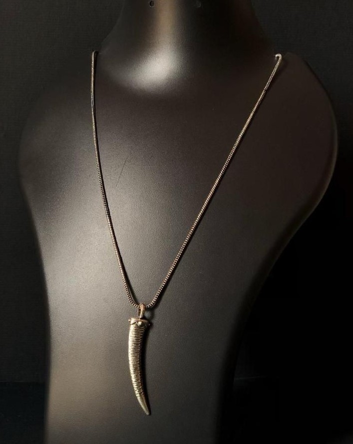 Vintage Silver Oxidised Horn Animal Tooth pendant with chain that pairs well with any type of attire.