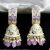 Style these earrings with a pastel-colored outfit like a lavender or soft pink saree, or an embroidered Anarkali suit, to complement the color tones in the earrings. You can also pair them with gold jewelry for a cohesive look. If you’re opting for a lighter outfit, the earrings can add a pop of color, while the jhumka shape brings a regal touch to your ensemble. Keep your hairstyle elegant—such as a low bun or soft waves—to showcase these statement pieces. These earrings are perfect for festive occasions, weddings, or any traditional event where you want to blend sophistication with a touch of playful color.