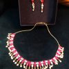 This American diamond choker set with ruby stone is a stunning and versatile piece of jewelry .This type of jewellery is perfect for special occasions, such as weddings, proms, and other formal events. It is a timeless piece that will add a touch of elegance and sophistication to any outfit.
