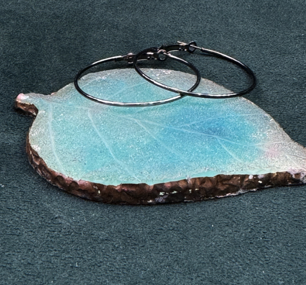 These earrings are a pair of sleek, minimalist black metal hoops that offer a modern take on a classic design. With a smooth finish and lightweight form, they are understated yet edgy—perfect for everyday wear or as a subtle statement in a more refined outfit. The deep black tone adds a touch of mystery and contemporary flair, making them a versatile accessory.