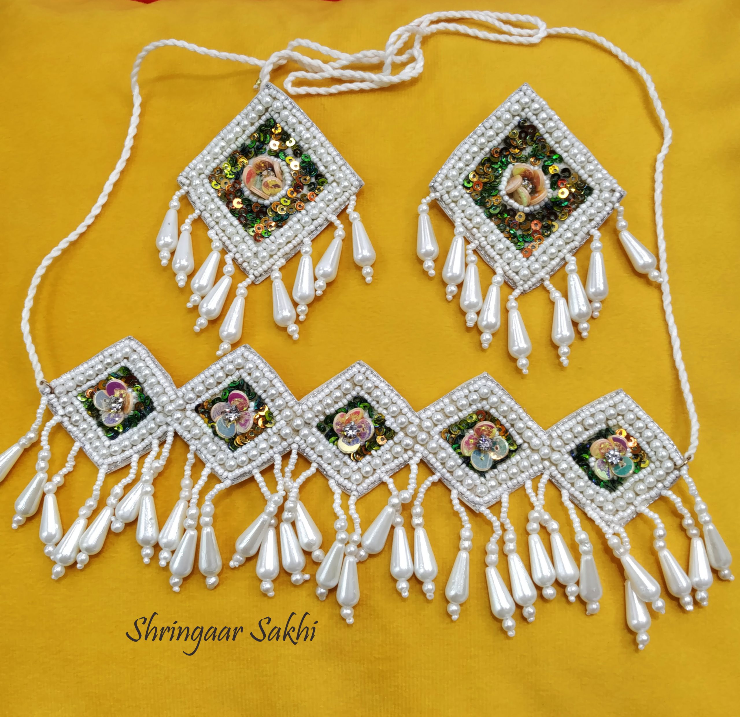 handcrafted necklace has White and Multi-color toned beaded intricate details secured with a tie-up closure.