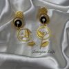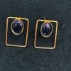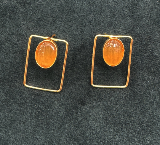 These chic Shringaar Sakhi earrings feature a minimalist gold rectangular frame with a striking amber-toned oval stone at the center. The clean design blends modern style with sophistication, making them perfect for both casual and formal occasions.